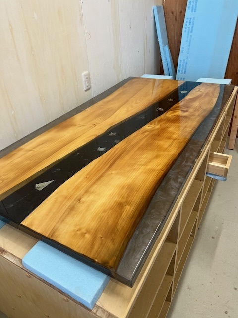 西内工務店では、新たにリバーテーブル(レジンテーブル)事業をはじめました。天然木とレジン(樹脂)を組み合わせて、唯一無二の天板を製作しています。ダイニングテーブルはもちろん、カウンター天板や造作洗面台の天板にも設置できます。オーダーメイドも可能ですので、まずはご相談下さい。